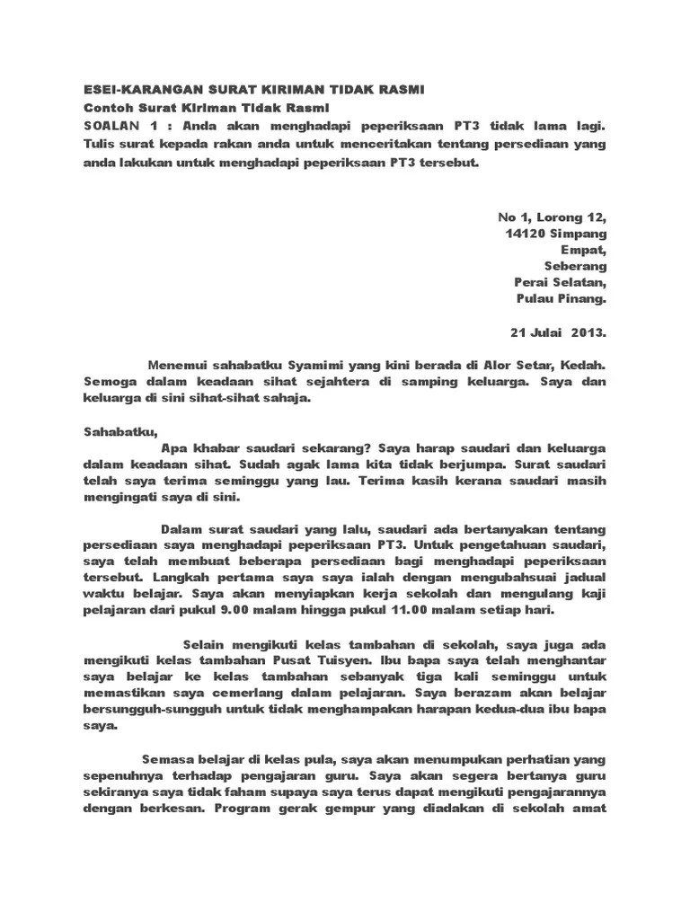Contoh Surat Tidak Rasmi Format - Cth Karangan Surat Tidak Rasmi Pdf. Jika tidak, email pun boleh. Untuk format tulis surat rasmi dengan lebih lengkap anda boleh klik di sini Koleksi teka teki lawak, bodoh, … 16.09.2021 · ini kerana, surat kiriman rasmi ditulis berpandukan kepada format yang tertentu, penggunaan bahasa yang formal, dan panggilan yang rasmi. Catatan terbaru catatan lama laman utama. Format & contoh surat kiriman tidak rasmi yang betul.